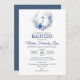 Celebre o dia católico especial do seu filho com este belo convite do Batismo. Apresentando uma coroa de flores azuis em volta de uma delicada cruz, Espanhol/Espanhol: Celebra el Bautizo de tu hijo o hija con esta invitación.