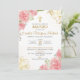 Convite Bautizo Invitación em Flores Rosa Batismo Espanhol