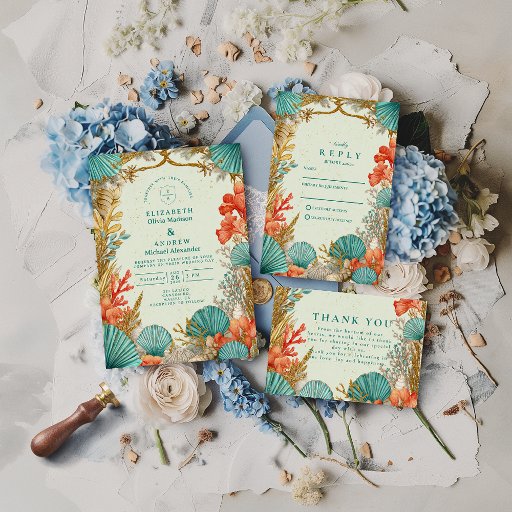 Convite Beach Seashell Botanical Wedding