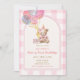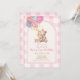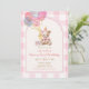 Convite Bear Balloon Pink Gingham Beary First Birthday