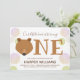 Nosso ursinho está fazendo um primeiro convite de aniversário para bebês. Este convite é castanho, branco, cor-de-rosa e verde, com a palavra "um" em letras grandes, com uma ilustração do rosto de urso como primeira letra da palavra e balões rosa e verde. Simplesmente personalize este convite, adicione-o ao seu carrinho e feliz aniversário ao seu bebê maravilhoso! Bear Balloons Bebê Primeiro Aniversário Convite Feriado Design | ©Melissa Patton — Artista/Ilustrator