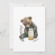 Um lindo urso bebê brincando com um pote de mel neste convite de chá de fraldas floral de boho marrom.