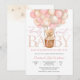 Celebrate the arrival of your little one with this whimsical baby shower invitation featuring a sweet teddy bear lifted by pastel balloons. The soft pink, peach, and cream tones create a dreamy and joyful design perfect for honoring expectant parents. This charming card is ideal for baby girl showers, blending playful illustration with elegant style to delight guests and set the tone for a memorable celebration.