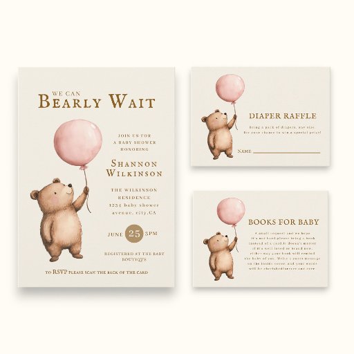 Celebrate the arrival of your little one with this adorable "Beary Cute" baby shower invitation. Featuring a charming watercolor illustration of a teddy bear holding a blue balloon, this design captures the sweet anticipation of new beginnings. The phrase "We Can Bearly Wait" adds a playful touch, perfectly setting the tone for a joyful celebration. The back of the card features a modern QR code design for easy RSVPs or information sharing, set against a classic blue and cream stripe pattern. This invitation is ideal for anyone looking for a whimsical and memorable way to invite guests to a baby shower.