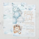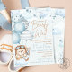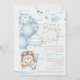 We Can Bearly Wait Baby Shower Invitation. This cute and whimsical teddy bear themed invitation will put a smile on your guests' faces! This design features soft pastel blue and brown colors, balloons, airplanes, clouds, and stars. This is perfect for baby boy baby showers! Easily customize this invitation with you own text. Coordinating invitation, signs, and party decor also available.