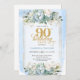 Convite Beautiful dusty blue and gold 90th birthday invite