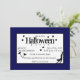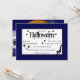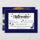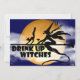 O ditado "Beba Bruxas" com uma bruxa sobre uma vassoura com um gato e um martini sobre uma lua laranja cheio com nuvens.
