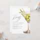 Atenção a todos os fantásticos frequentadores de festas! Preparem-se para celebrar um tiquinho mais velhos com estilo com este Convite de Aniversário. Canalize seu James Bond ou garota Bond interior com nosso design sofisticado, apresentando uma citação espirituosa e uma ilustração em aquarela de um martini completo com azeitonas e ramos de oliveira. Nosso modelo de convite moderno é completamente personalizável, tornando-o perfeito para ele ou ela. Não perca a festa do ano!