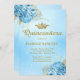 Bebê Azul Dourado Floral Tiara Quinceanera Convite