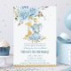 Convite Bebê Azul Floral Elefante Um primeiro aniversario