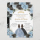 Convite Bebê Azul Negra Gêmeas Florais Douradas Quinceañer