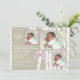 Birch tree Christening Invitation acentuou-se em rosa com espaço para três fotos do seu bebê e muito espaço para texto nas costas para texto adicional. arco rosa bonito e árvores brancas de pássaros fazem um doce anúncio de nascimento também.