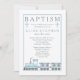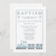 Belo gradiente azul, de tom prateado, cinza azul e coro branco treinando o bebê bebezinho Baptism convite design. Personalize com os detalhes do evento. Design original por Holiday Hearts Design (todos os direitos reservados).