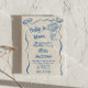 Se você estiver procurando um elegante convite de chá de fraldas exclusivo e personalizável, isso é perfeito para você. Como podem ver, ele apresenta um roteiro manuscrito e um buquê de flores desenhado à mão. Isso apresenta uma borda de arco de fita desenhada manualmente. Tudo em azul sobre fundo cremoso. Muito fácil de personalizar e usar. Então pegue e masculine seus convites muito comprometidos.
