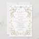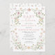 Celebre a chegada do seu pequeno com o nosso elegante convite de chá para a menina. Apresentando flores silvestres cor-de-rosa e folhas verdes em coroa delicada e pequenas borboletas voando por aí, este convite rústico dá o tom perfeito para uma primavera ou verão celebração com tema fofo.