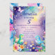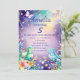 Convite de aniversário infantil com bebê dinossauro verde fofo com flores e borboleta em tema azul. Perfeito para crianças que amam dinossauros.