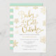 Bebê da folha Dourado do falso é convite exterior frio do chá de fraldas, com a hortelã e o ouro listrados para trás.