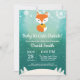 Bebê é frio fora do Chá de fraldas da Raposa de inverno. Garoto ou Chá de fraldas. Floco de neve branco e azul. Raposa. Convite para Chá de fraldas de férias de inverno. Fundo Aqua. Para mais personalização, clique no botão "Personalizar" e use nossa ferramenta de design para modificar este modelo.