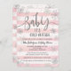 Listras brancas e cor-de-rosa com flocos de neve com brilho prateado convite para chá de fraldas para a menina chá de Maravilha de inverno.