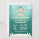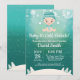 Bebê é frio fora do Chá de fraldas de inverno. Garoto ou Chá de fraldas. Floco de neve branco e azul. Convite para Chá de fraldas de férias de inverno. Fundo Aqua. Para mais personalização, clique no botão "Personalizar" e use nossa ferramenta de design para modificar este modelo.