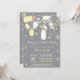 Bebê é Frio Fora do Convite para Chá de fraldas de Mason Jar de inverno. Convite para Chás de fraldas de Menino ou Menina. Flocos de neve amarelos e brancos. Pote de vidro Mason. Flores Florais. Luzes de Corda. Fundo das cinzas. Para mais personalização, clique no botão "Personalizar" e use nossa ferramenta de design para modificar este modelo.