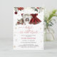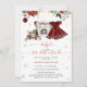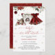 O bebê é Frio Fora do Natal Convite para Chás de fraldas é um tema de celebração encantador e festivo, combinando a magia do Natal com a alegria de acolher uma menina. No centro da design está um vestido de charmoso burgundy, que expele uma sensação confortável de feriado. O vestido é belamente embelezado com flores de inverno, acrescentando um toque de elegância sazonal e de charme de vinho natural. Outros elementos inspirados no Natal, como presentes envoltos, flocos de neve e ornamentos à volta da cena, criando um ambiente alegre e festivo. Itens correspondentes disponíveis.