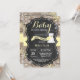 Bebê é um convite para Chá de fraldas do Urso Polar de inverno Frio Fora da Rússia. Floco de neve amarelo. Fundo do Quadro de Madeira Rústica. Campo de Vintage Retro Barn Convite para Chás de fraldas de Menino ou Menina. Convite para Chá de fraldas de férias de inverno. Flocos de neve amarelos e brancos. Para mais personalização, clique no botão "Personalizar" e use nossa ferramenta de design para modificar este modelo.