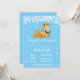 Bebê é Frio Fora do Convite para Chás de fraldas de cervos de inverno. Floco de neve branco. Convite para Chás de fraldas de Menino ou Menina. Convite para Chá de fraldas de férias de inverno. Fundo Azul. Para mais personalização, clique no botão "Personalizar" e use nossa ferramenta de design para modificar este modelo.