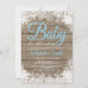 Bebê É Frio Fora Do Convite Para Chá de fraldas De Floco De Neve De Inverno. Convite para Chás de fraldas. Azul. Convite para Chá de fraldas de férias de inverno. Flocos de neve brancos. Fundo Rustic Wood. Campo de Vintage Retro Barn Para mais personalização, clique no botão "Personalizar" e use nossa ferramenta de design para modificar este modelo.