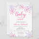Querida, está frio fora do Chá de fraldas de inverno. Este convite é perfeito para chás de fraldas de inverno. O esquema de cores é muito giro em rosa e roxo com algum design de texto dourado/brilho. Convite de chá de fraldas rosa e roxo com flocos de neve fofos. Ilustração digital de Kristine Lee. Para obter mais informações, visite www.kristineleedesigns.com