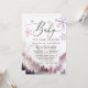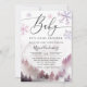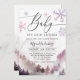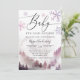 Cartão de convite para chás de fraldas moderno, que inclui a arte aquosa da montanha de inverno com pinheiros com flocos de neve a rosa. O texto diz "Querida, está frio lá fora."