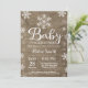 Bebê É Frio Fora Do Convite Russo De Chá de fraldas De Inverno. Convite para Chás de fraldas de Menino ou Menina. Convite para Chá de fraldas de férias de inverno. Flocos de neve brancos. Fundo Burlap. Retro de Vintagem do País. Para mais personalização, clique no botão "Personalizar" e use nossa ferramenta de design para modificar este modelo.