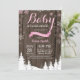 Bebê é o convite do Chá de fraldas russo de inverno Frio. Floco de neve rosa e branco. Convite para Chás de fraldas. Convite para Chá de fraldas de férias de inverno. Fundo Rustic Wood. Campo de Vintage Retro Barn Montanha Florestal de Árvores Woodland. Para mais personalização, clique no botão "Personalizar" e use nossa ferramenta de design para modificar este modelo.