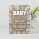 Bebê é Frio Fora da Rústica Convocação do Chá de fraldas de inverno. Floco de neve branco. Convite para Chás de fraldas de Menino ou Menina. Convite para Chá de fraldas de férias de inverno. Fundo Rustic Wood. Campo de Vintage Retro Barn Para mais personalização, clique no botão "Personalizar" e use nossa ferramenta de design para modificar este modelo.