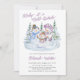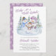 O convite ao Chá de fraldas de Snowman escreveu com "bebê está frio lá fora" numa paleta de cor de lavanda e branco. Design de aquarela branca com trio de neve feliz cercado por árvores de natal. O convite para férias de inverno tem flocos de neve nas costas e tipografia encaracolada.