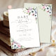 Um convite de chá de fraldas elegante e moderno, neutro em termos de gênero, rústico, "Baby in Bloom", com um quadro floral de cor aquosa de anêmonas brancas, rosas cor-de-rosa, flores recheadas e folhagem, num arranjo floral exuberante. Esse elegante, rústico, convite de chá neutro em relação a gênero também apresenta caligrafia romântica e moderna com fartas flores e uma dica de sábio verde na cor do dorso.