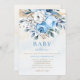 Convite Bebê em Bloom Rosas Azuis Elegantes Chá de fraldas