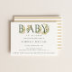 BABY In Bloom, flores de aquarela e verde delicado adoravam letras negrito, convite para chás de fraldas. A parte traseira da placa coordena o padrão de faixa de aquarela neutra.