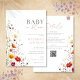 Este convite de baby shower bonito e elegante apresenta flores silvestres e pode ser personalizado com todas as informações da sua celebração especial, com o código QR do seu registro e detalhes do evento no verso. Criado por Thisisnotme©