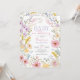 Celebre novos começos da maneira mais bonita com este convite de chá de bebê Baby in Bloom, apresentando uma moldura floral em aquarela suave e uma paleta fresca e romântica. Flores silvestres delicadas em rosa beije, lavanda, amarelo manteiga e azul suave rodeiam uma tipografia elegante, criando um design leve e arejado que se sente alegre, feminino e atemporal. Perfeito para chá de bebê na primavera e no verão, encontros no jardim ou celebrações com tema floral, este convite captura a beleza das flores em plena estação, ao mesmo tempo em que estabelece um tom caloroso e acolhedor para homenagear a futura mamãe.
