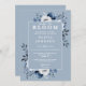 Este elegante convite para chás de fraldas florais azuis e poeirentos pode ser personalizado com a sua informação na tipografia moderna. Projetado por Thisnotme©