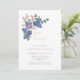 Há um bebê no quarto! Este design apresenta lindas flores silvestres de aquarela em um buquê incrível, e é simples, na moda, e elegante. O convite para o chá de fraldas está disponível em cores azuis e rosa empoeiradas!