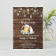 Este convite elegante apresenta luzes brilhantes de cordas e frascos de pedras com um fundo de madeira rústica.