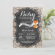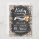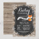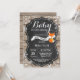 Convite de Churrasco de Bebê Raposa de Inverno Rústico, Está Frio Lá Fora. Floco de Neve Branco. Fundo de Quadro Negro de Madeira Rústica. Celebração de Bebê Menino ou Menina em Celeiro Vintage Retrô Country. Convite de Churrasco de Bebê de Férias de Inverno. Para personalização adicional, clique no botão "Personalize" e use nossa ferramenta de design para modificar este modelo.