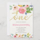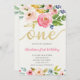 Convite Bebê Floral Dourada Rosa Brilhante Primeiro Aniver