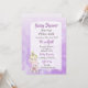 Convites de Chás de Bebê Menina Loira com Ursinho com bolinhas e laços roxos e brancos.