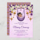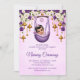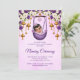 Menina linda, tradicional indiana, Naming de Bebê Naming Ceremony Cradle, Namkaran Ceremony Ceremony editável em modelo de convite instantâneo para download digital, convite à cerimônia de Namakarana, menina bonitinha no berço roxo e saree decorada com terras roxas e brancas e garlands douradas, adequadas para uma menina.
