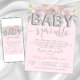 Convite de chá de bebê chuveirinho com belos balões de folha prateada em um lindo fundo floral aquarela rosa. Este convite de chá de bebê chuveirinho é facilmente personalizado para o seu evento, basta adicionar seus detalhes. Você também pode alterar a cor do fundo da frente e do verso.