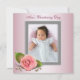 Convite de batizado de menina bebê com fotografia rosa cor-de-rosa.