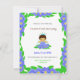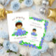 Lindo bebê prince com flores azuis ao redor em fundo branco para festa de primeiro aniversário